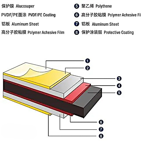 铝塑板是一种高性能、高强度的建筑外墙装饰材料,是以经过表面处理并涂装漆面的铝卷作为表层,聚乙烯塑料板作为芯层,经过一系列工艺过程加工复合而成的新型复合材料。