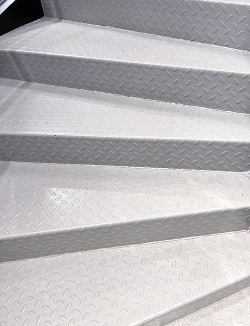 压花彩涂铝卷最常见的应用之一便是在建筑防滑领域。除了商场防滑楼梯和工厂耐磨地板,它还广泛应用于各类公共场所的楼梯踏板、走廊地面、室外露台地板等容易产生滑倒风险的区域。
