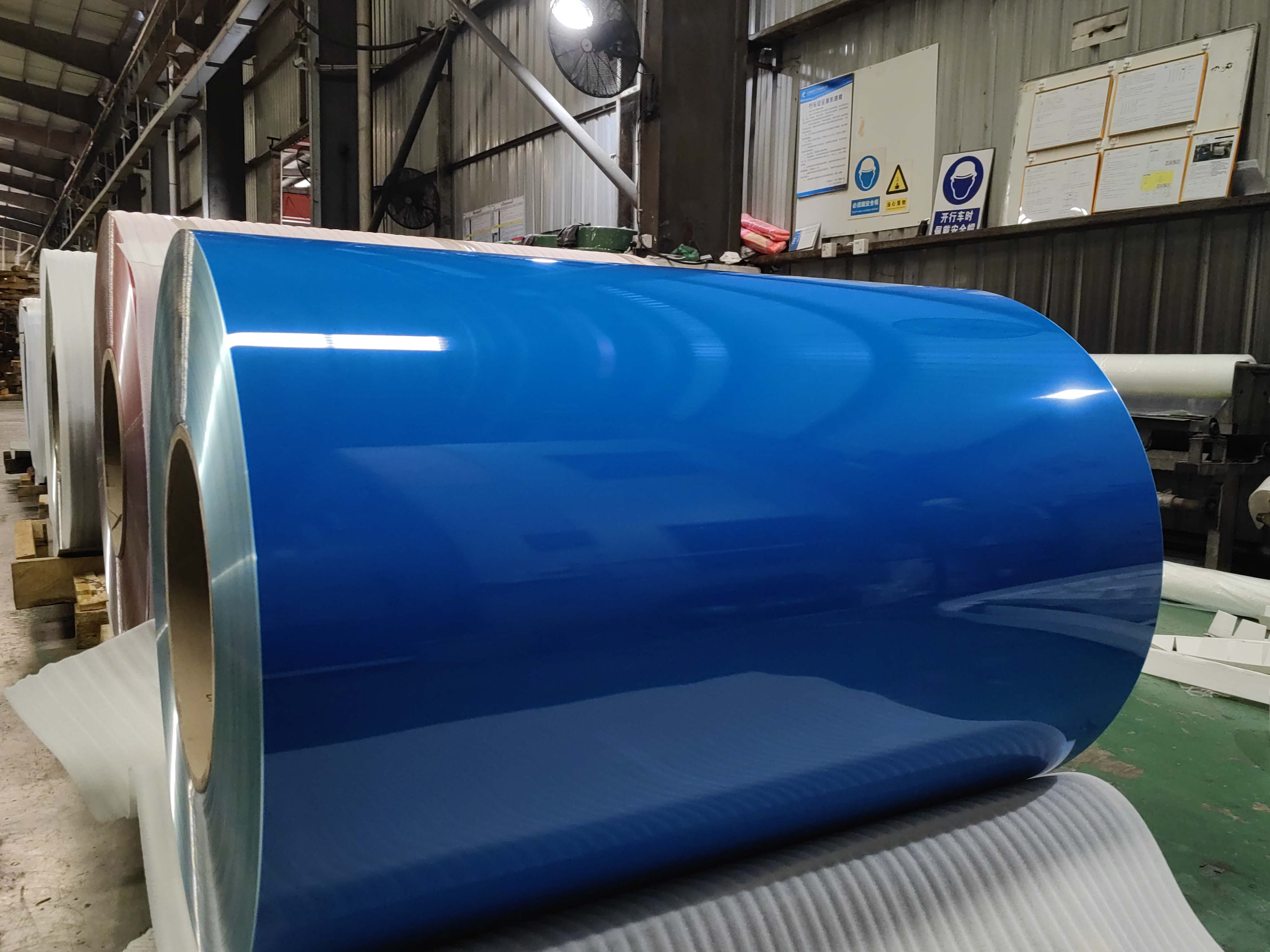 铝镁锰彩涂铝卷中加入铝、镁、锰特殊合金,形成三元合金结构。其屈服强度可达150-300MPa,刚度优于普通铝卷。铝镁锰彩涂铝卷具有强度高、质量轻、平整度高、易加工成型的特点。